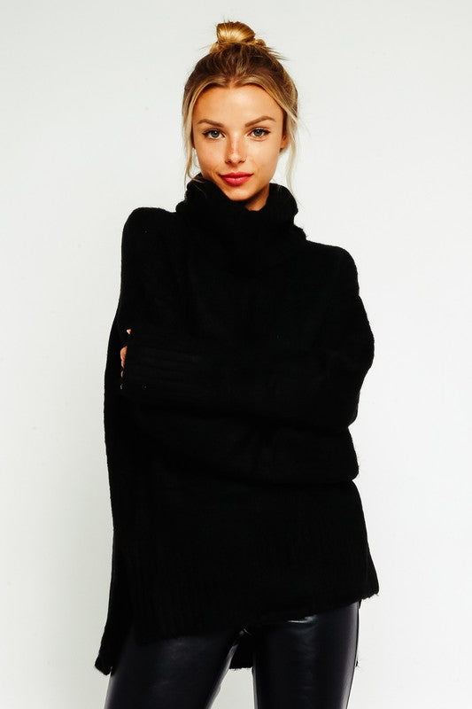 Fuzzy Turtleneck Oversized Sweater Heather Grey
