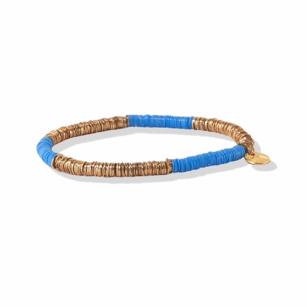 Grace Light Blue and Gold Two Color Block Sequin Stretch Bracelet