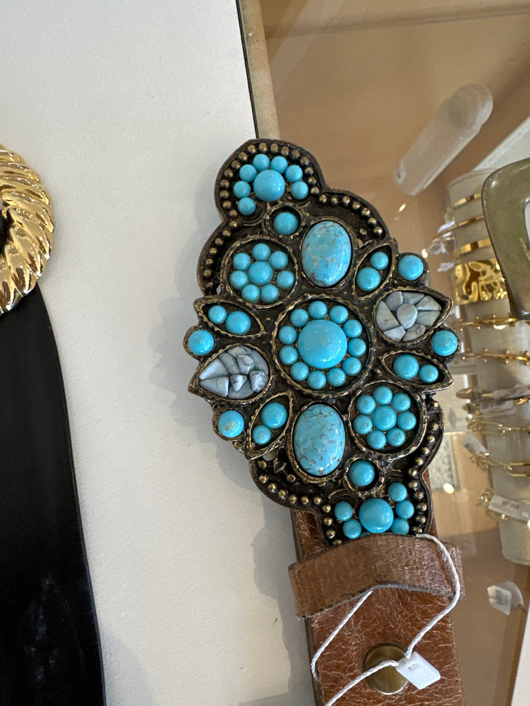 Vintage Leather rock Turquoise Leather Belt