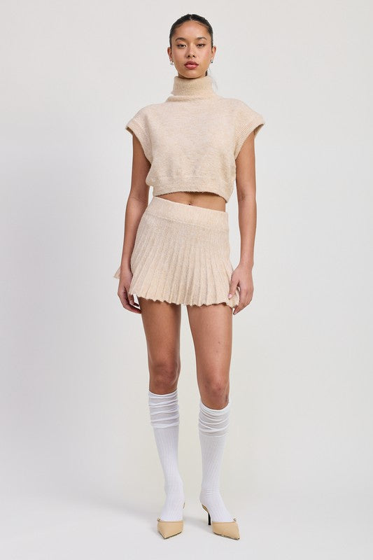 Sand Pleated Knit Mini Skirt - S is backordered and will ship as soon as it is back in stock.