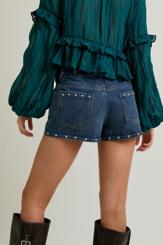 Indigo Stud Low Waist Shorts