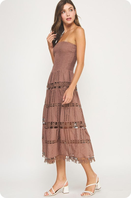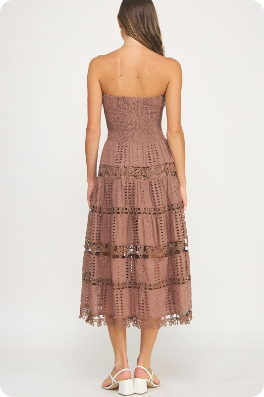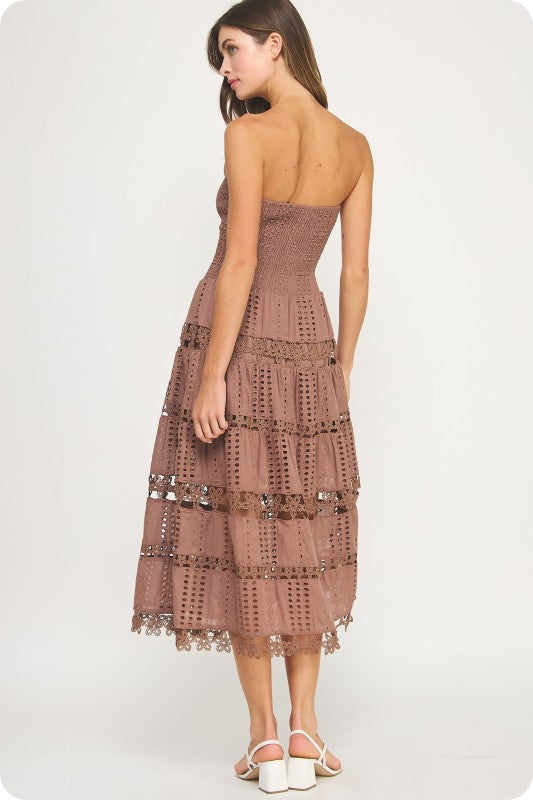 Brown Eyelet Lace Tube Dress