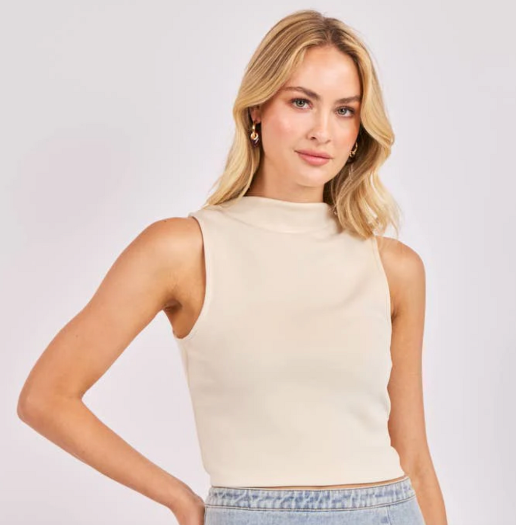 Cream Hustle High Neck Sleeve less Top
