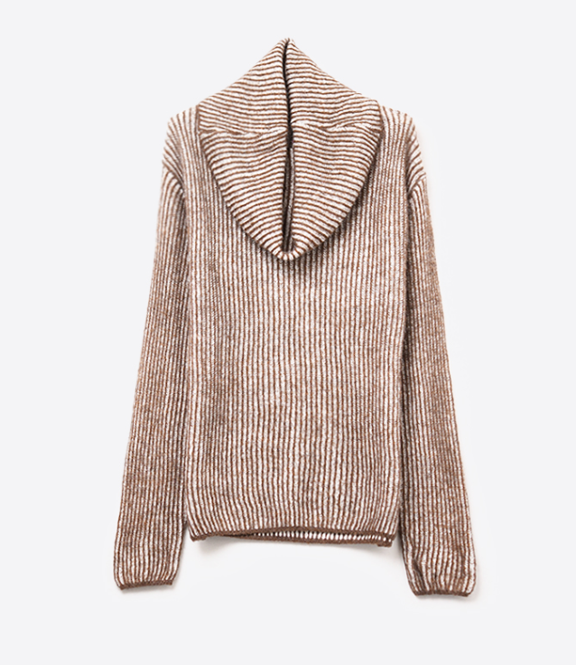 Brown Striped Sweater With Turtle Neck