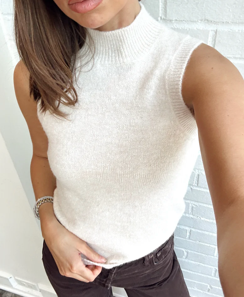 Brianna Cream Sleeveless Turtle Neck Sweater
