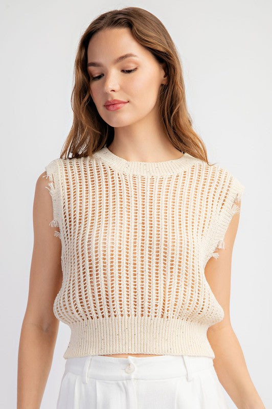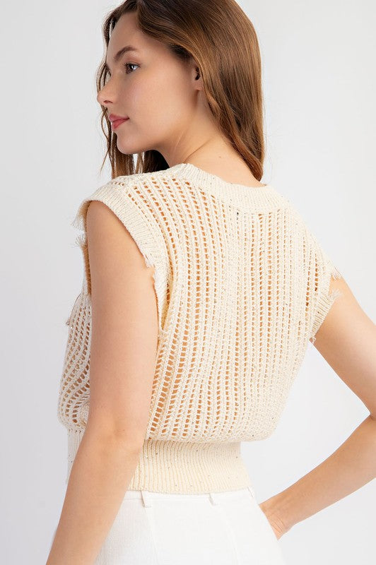 Gold Crochet Sleeveless Knit Top