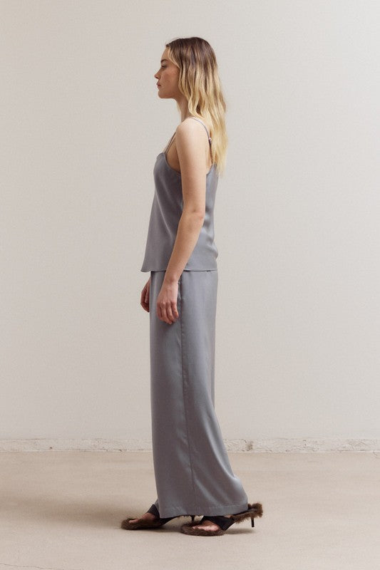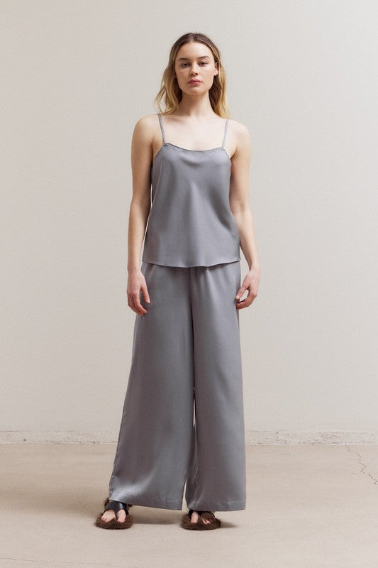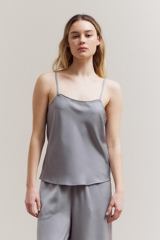 Elevate your basics with this sleek satin camisole. Designed with delicate spaghetti straps and a fluid drape, this cami offers a minimalist yet sophisticated look. The silky fabric adds a touch of luxury, making it perfect for layering or wearing on its own.