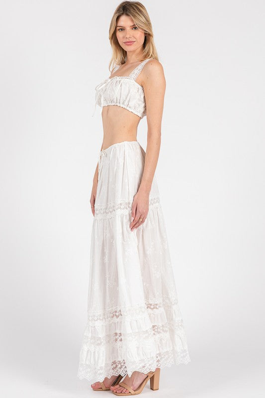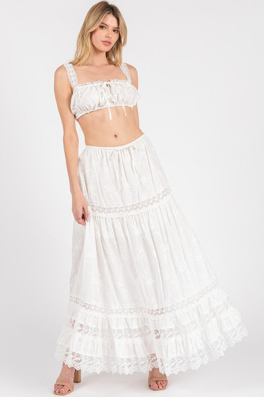 The White Lace Peasant Crop Top blends vintage charm with effortless style. Featuring soft lace details, a ruffled neckline, and puffed sleeves, this cropped silhouette brings a romantic, laid-back feel to any look. Lightweight and airy with a stretchy smocked back for comfort and ease.