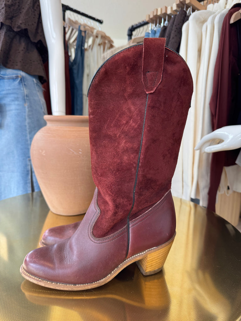 Vintage Burgundy Suede Boots
