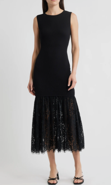 Black Knit Lace Midi Dress - XS is backordered and will ship as soon as it is back in stock.