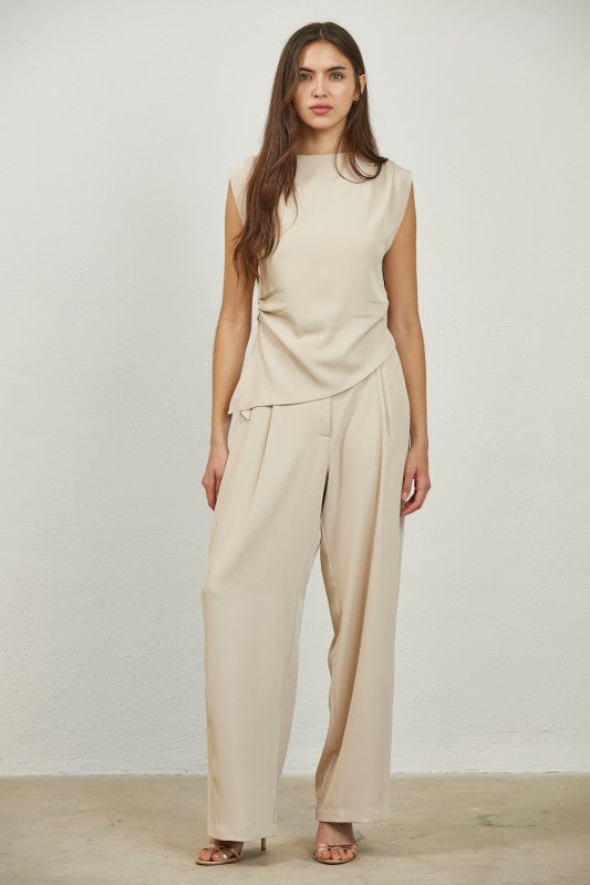 Cream Pleated Asymmetrical Top