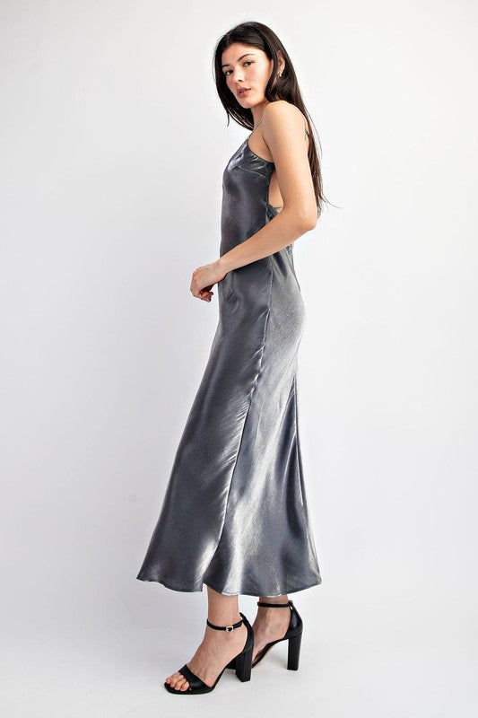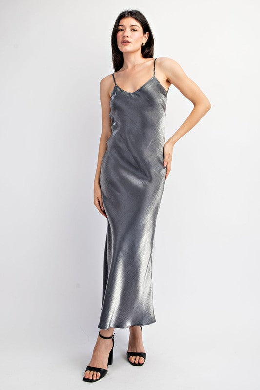Foil Woven Slip Maxi Dress - S is backordered and will ship as soon as it is back in stock.