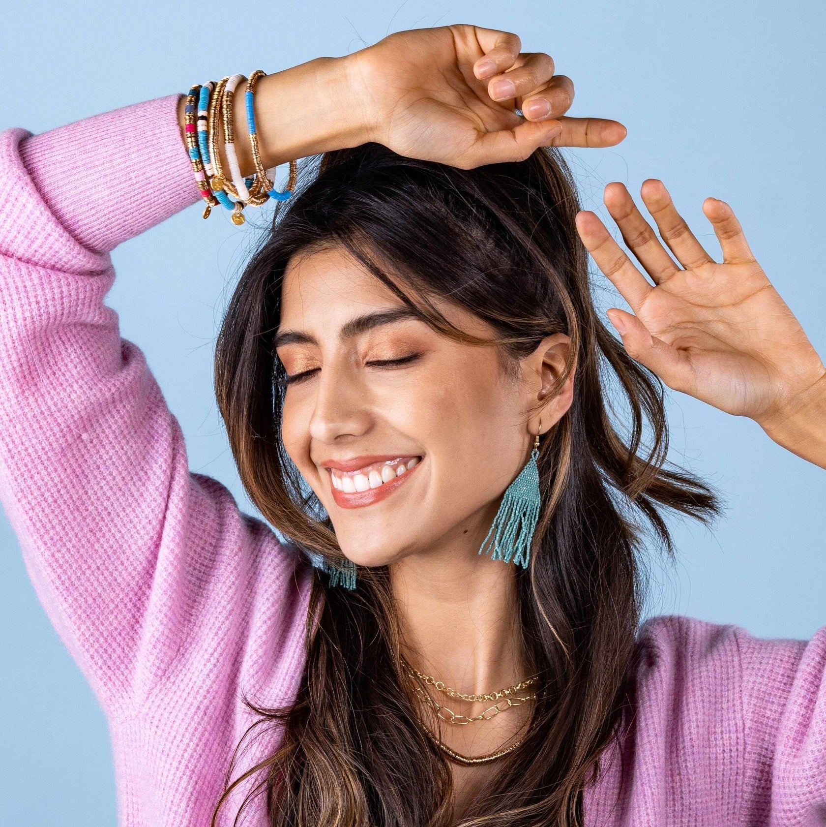 Mix + match, layer + stack - this attention-grabbing bracelet is perfect for creating a look that is uniquely you, part of our fun + cool Kaleidoscope collection. Blue + gold bring positivity and good vibes only to your next look.