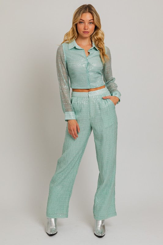 Matching Sequin Cropped Shirt also available.