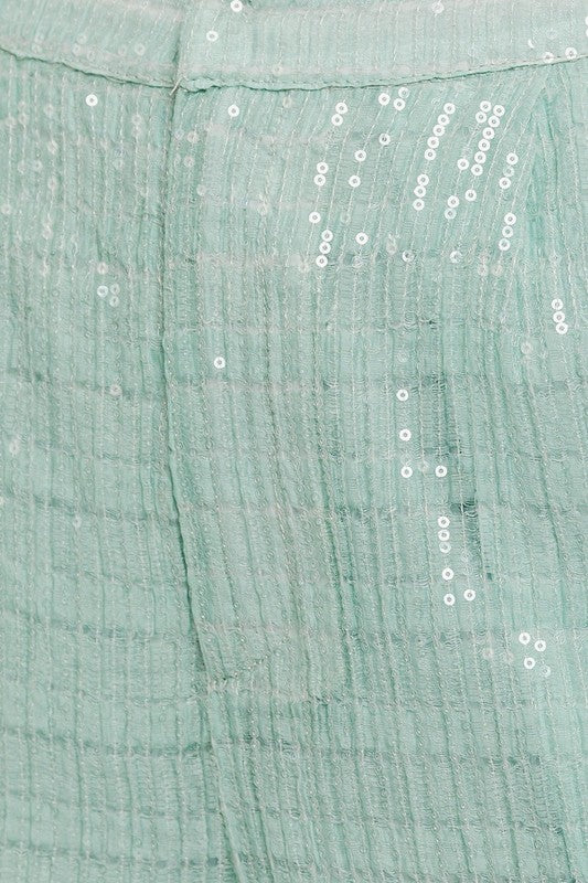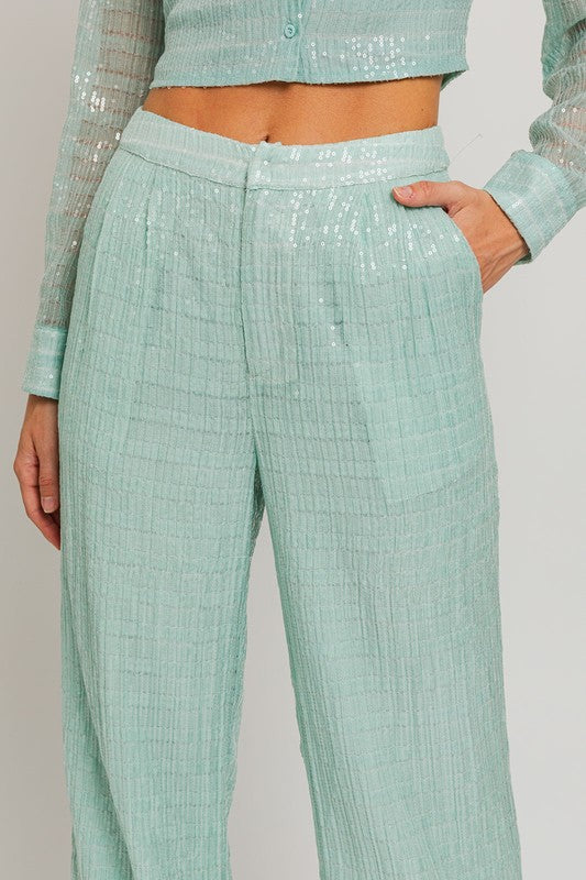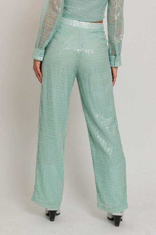 Light Blue Sequin High Waisted Pants