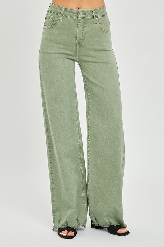 Olive High Rise Wide Pants
