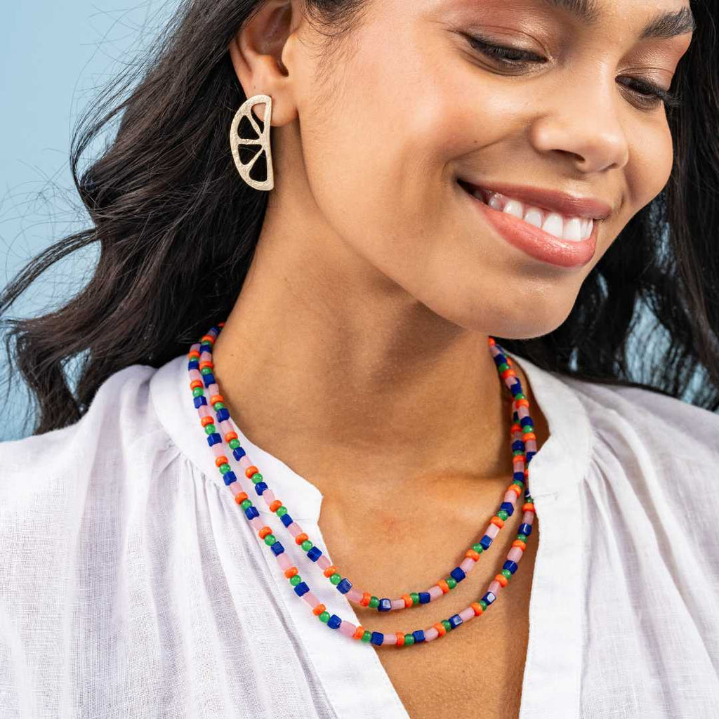 Mix, match, and layer effortlessly to create a look that's uniquely yours. The bright and bold colors, coupled with the delightful glass seed bead accents, add a playful touch to your style. Drape yourself in the captivating charm of the Natural Stone Bead Necklace – where every stone tells a story, and every color paints a picture of your dynamic personality.