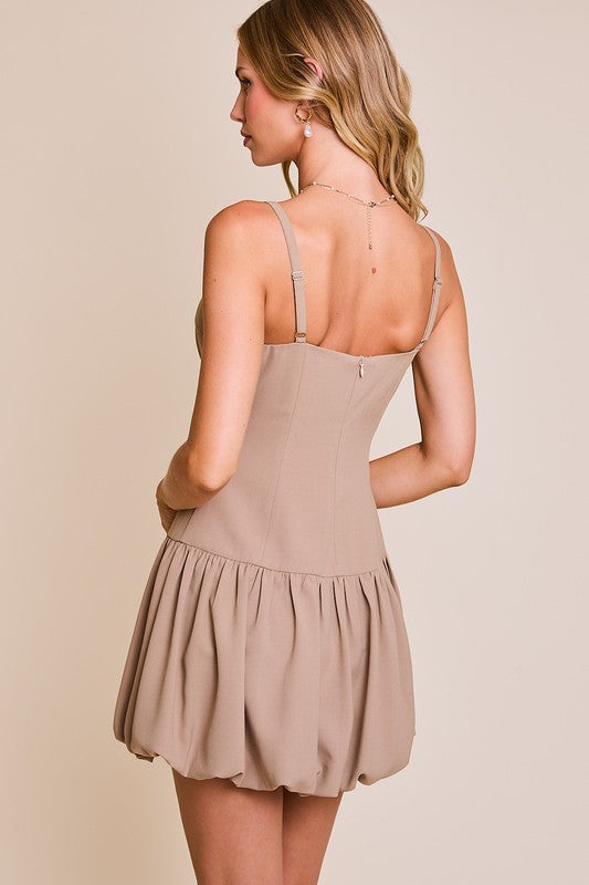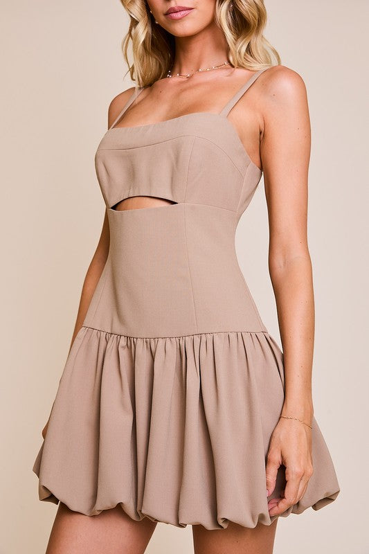 Taupe Balloon Skirt Front Cut Out Mini Dress