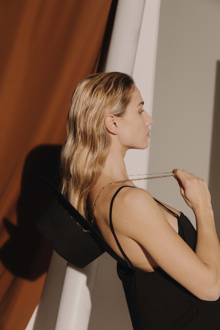 Gold plated jewelry, can be used like a necklace or with the hat like a bag