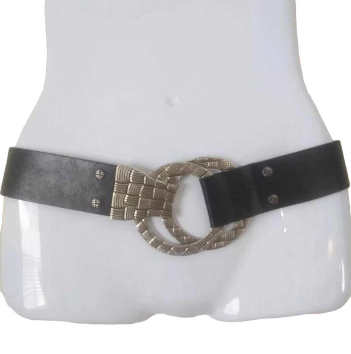 Vintage Black Leather Belt with Silver Buckle