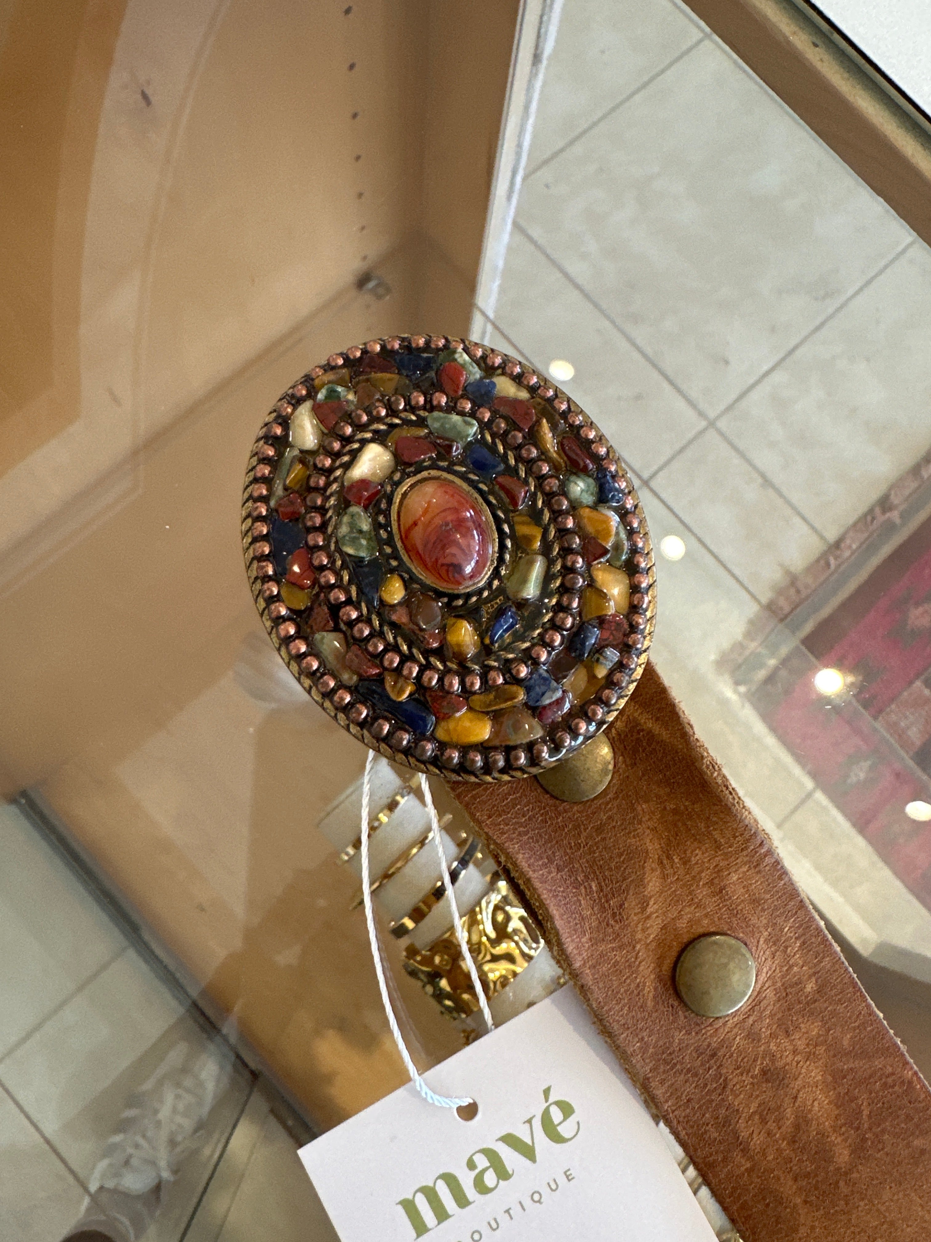 Vintage Stone Leather Rock Multi Stone Belt is backordered and will ship as soon as it is back in stock.